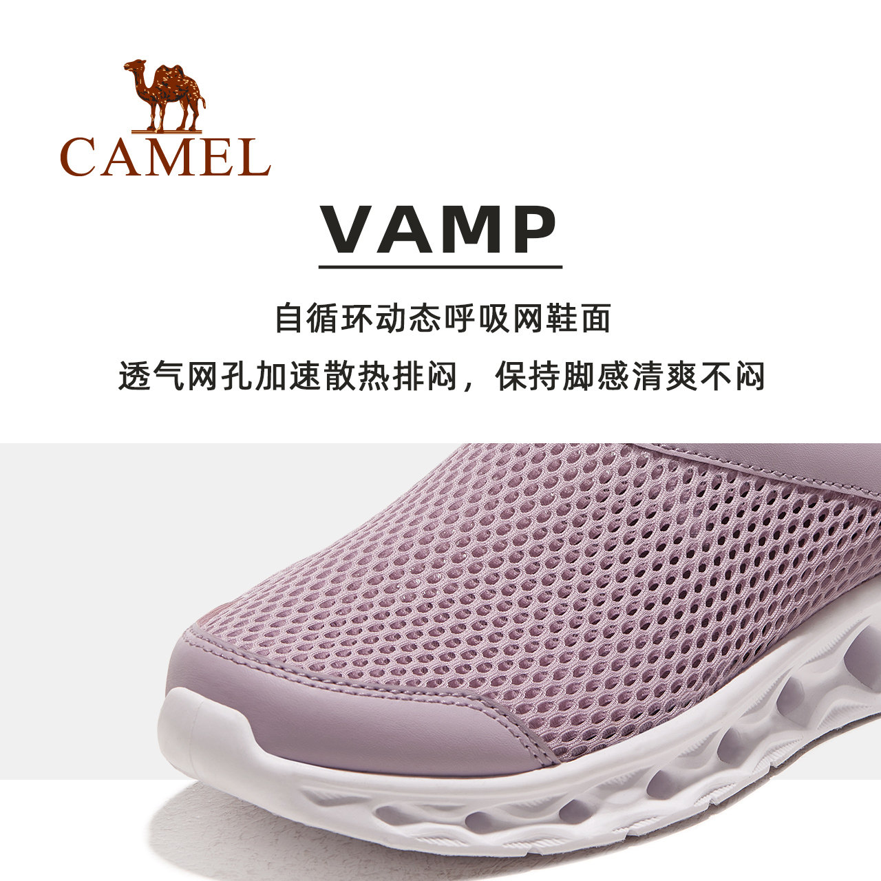 骆驼运动鞋女2024新款夏季女鞋网面透气网鞋一脚蹬鞋子休闲健步鞋