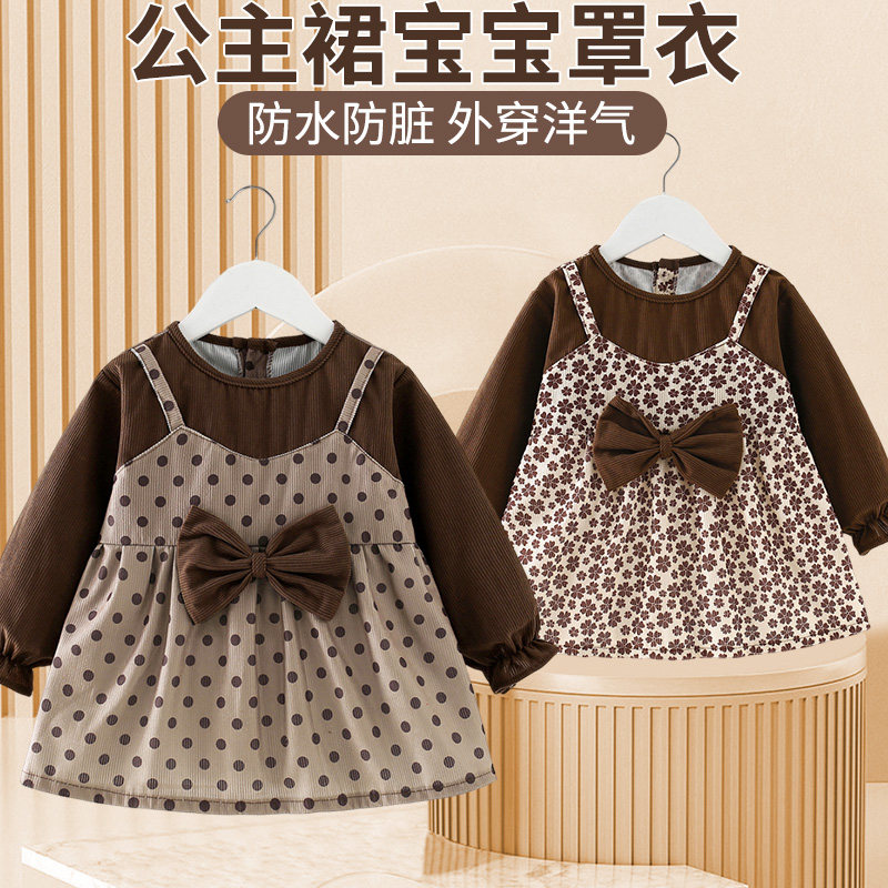 女宝宝罩衣外穿公主裙秋冬婴儿童围兜吃饭防水防脏反穿衣饭兜围裙