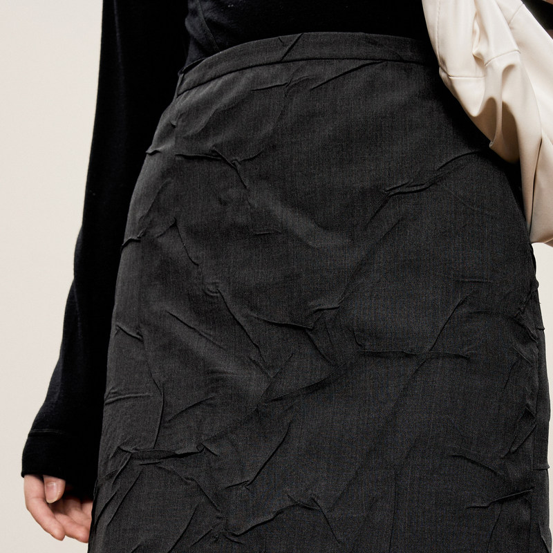 RAPPEYE 设计感褶皱折叠伞裙显瘦高腰不规则A字裙小个子半身裙女