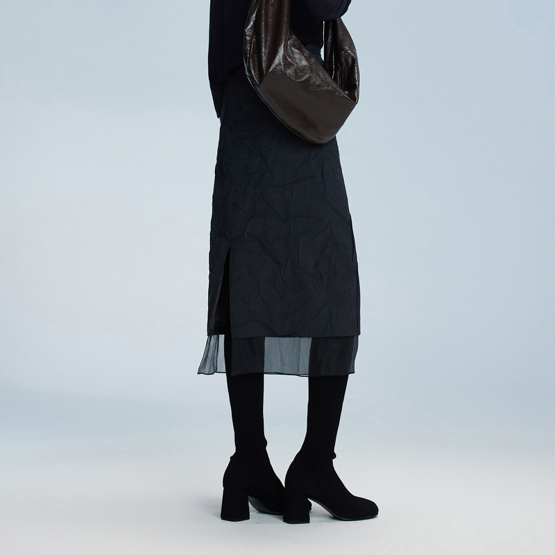 SIINSIIN直筒裙加绒2025年新款高腰收腹半身裙女黑色显瘦A字裙tk