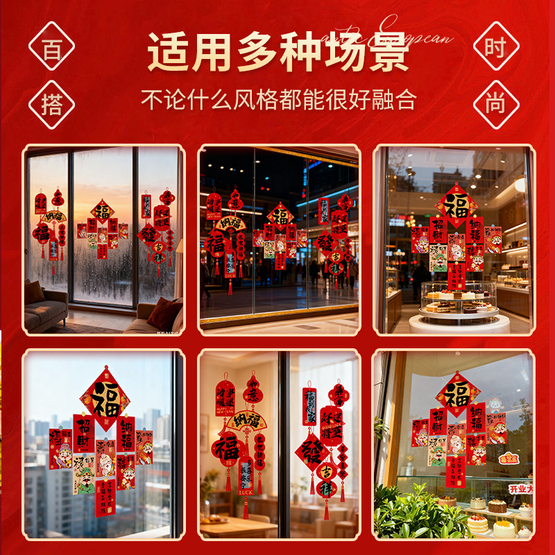过年2026装饰品玻璃贴过新年窗花贴画马年新款背景墙贴纸氛围静电