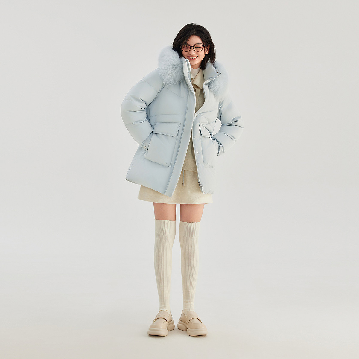 波司登2025新款羽绒服女简约时尚休闲温柔气质潮流大毛领厚羽绒服