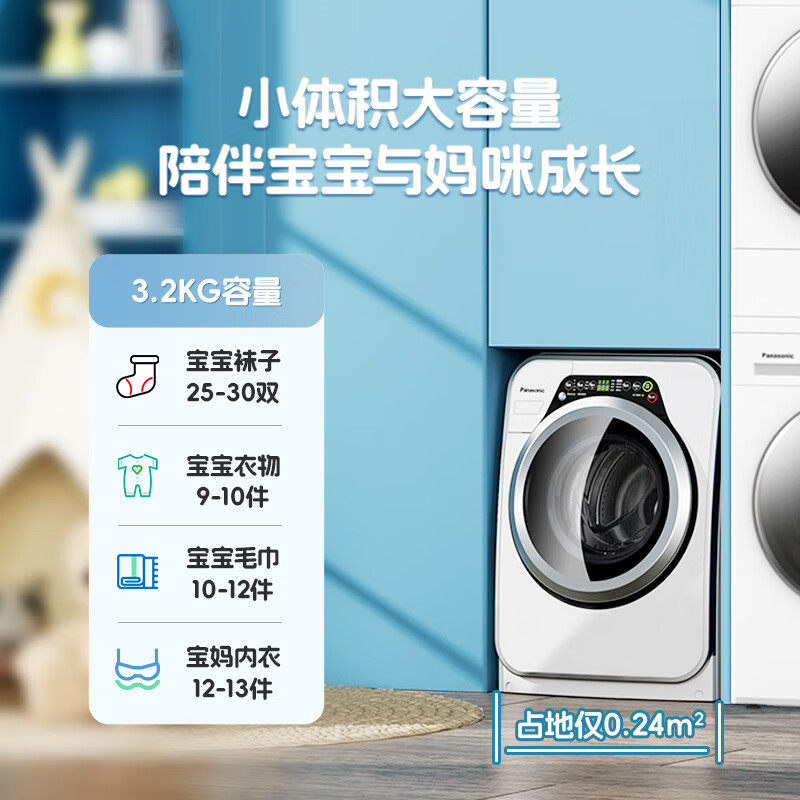 Panasonic/松下XQG32-A312E/A312D迷你婴儿滚筒洗衣机光动银3.2KG