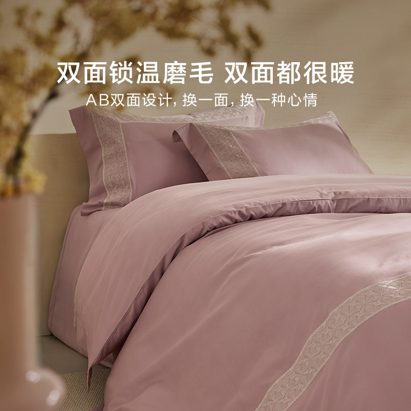 罗莱家纺25秋冬新品100支全棉贡缎磨毛加厚保暖套件高支四件套