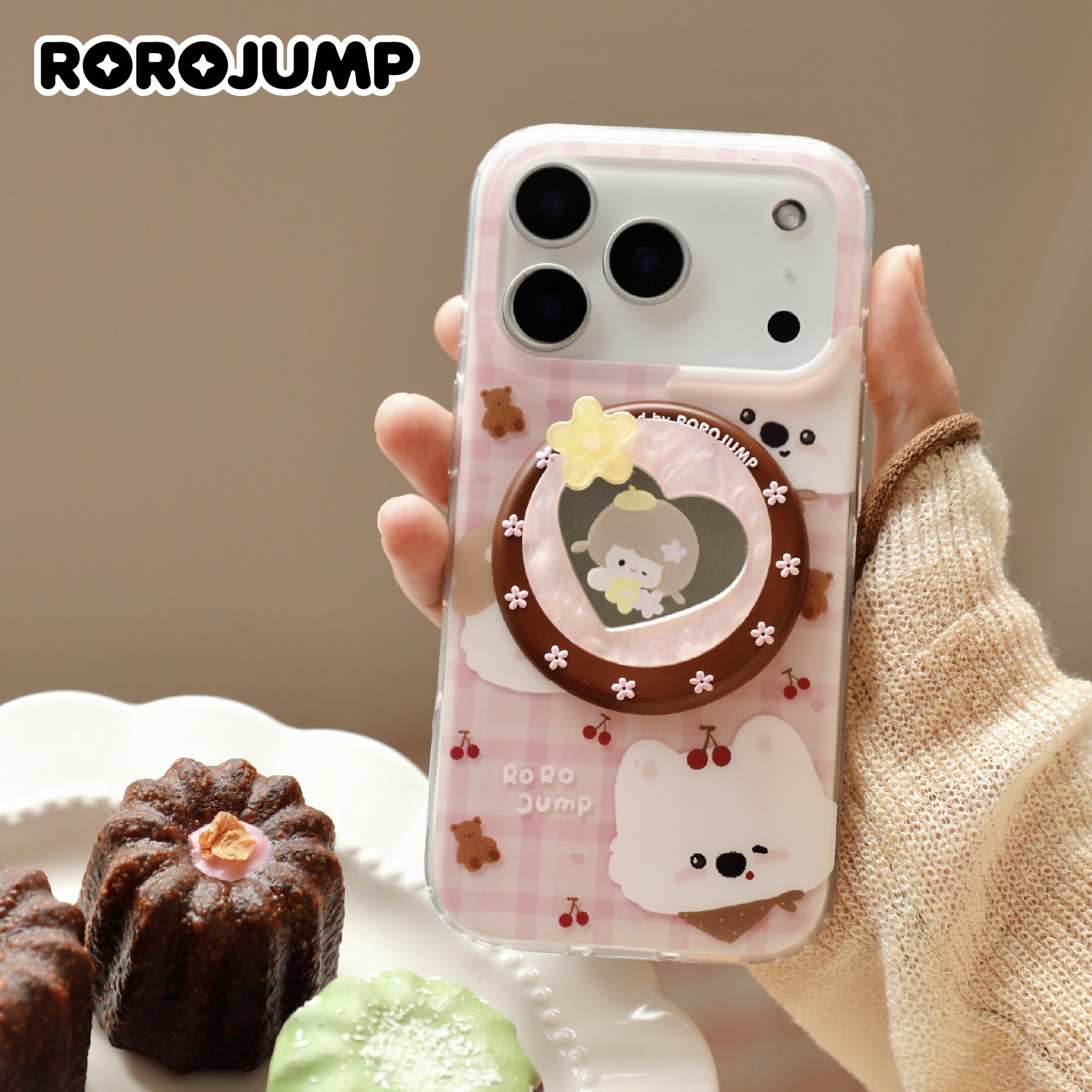 肉肉酱可露丽小伙伴磁吸支架立体浮雕底座手机支撑架贝壳纹镜子补妆神器原创新款