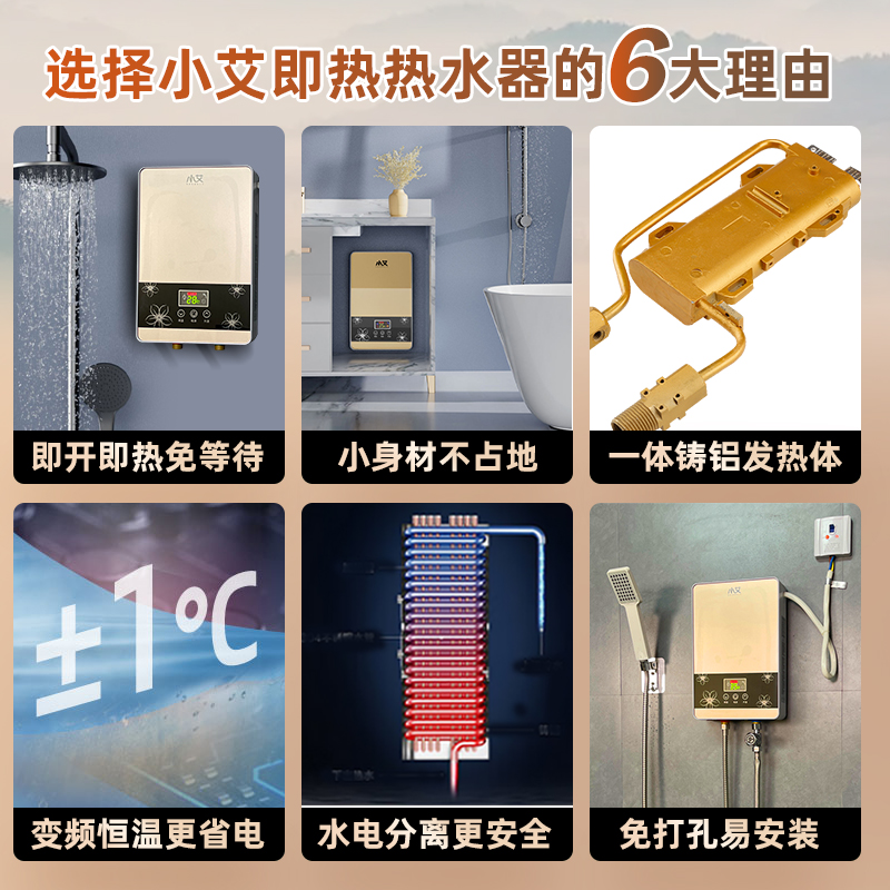 小艾即热式电热水器家用小型变频恒温速热小厨宝淋浴洗澡免储水