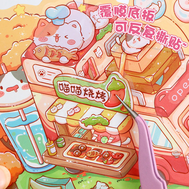 萌崽新款学霸学渣果冻贴纸安静书儿童免裁剪手工粘贴DIY女孩趣味玩具