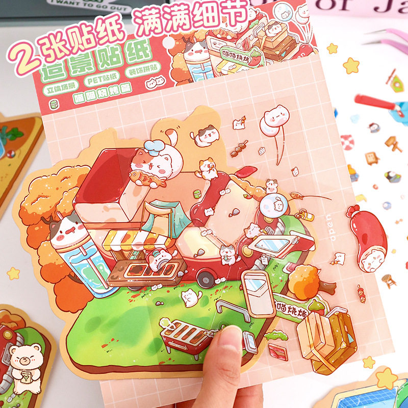 新款造景贴纸微缩3d立体小屋场景粘贴卡通解压手账贴画装饰素材