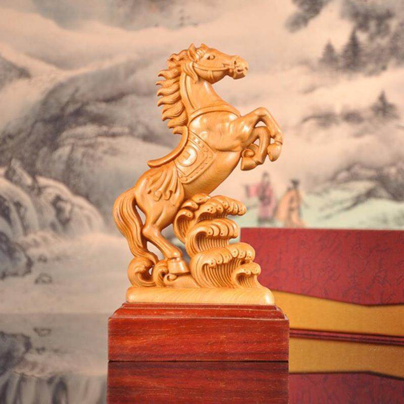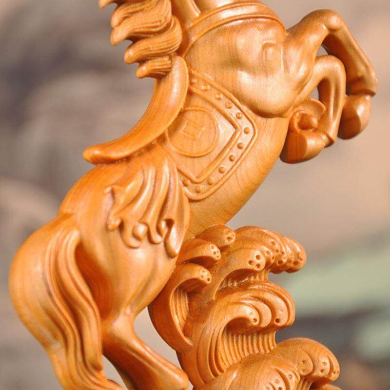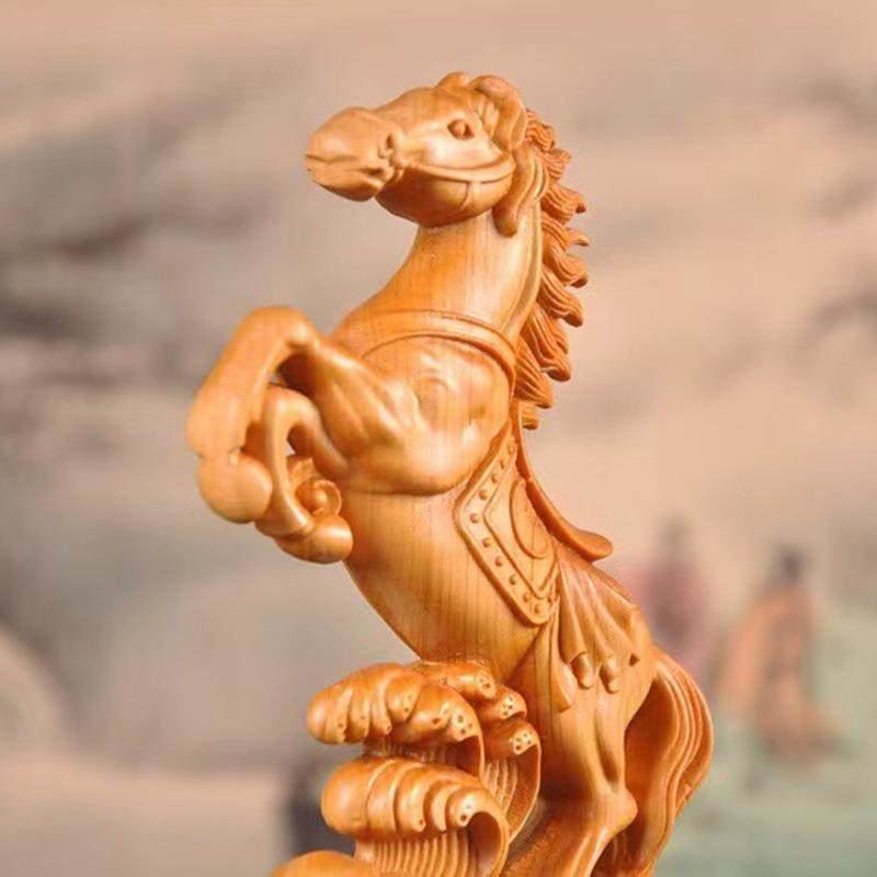 崖柏木雕马上有钱摆件实木雕刻工艺马到成功艺术品仿古装饰送礼