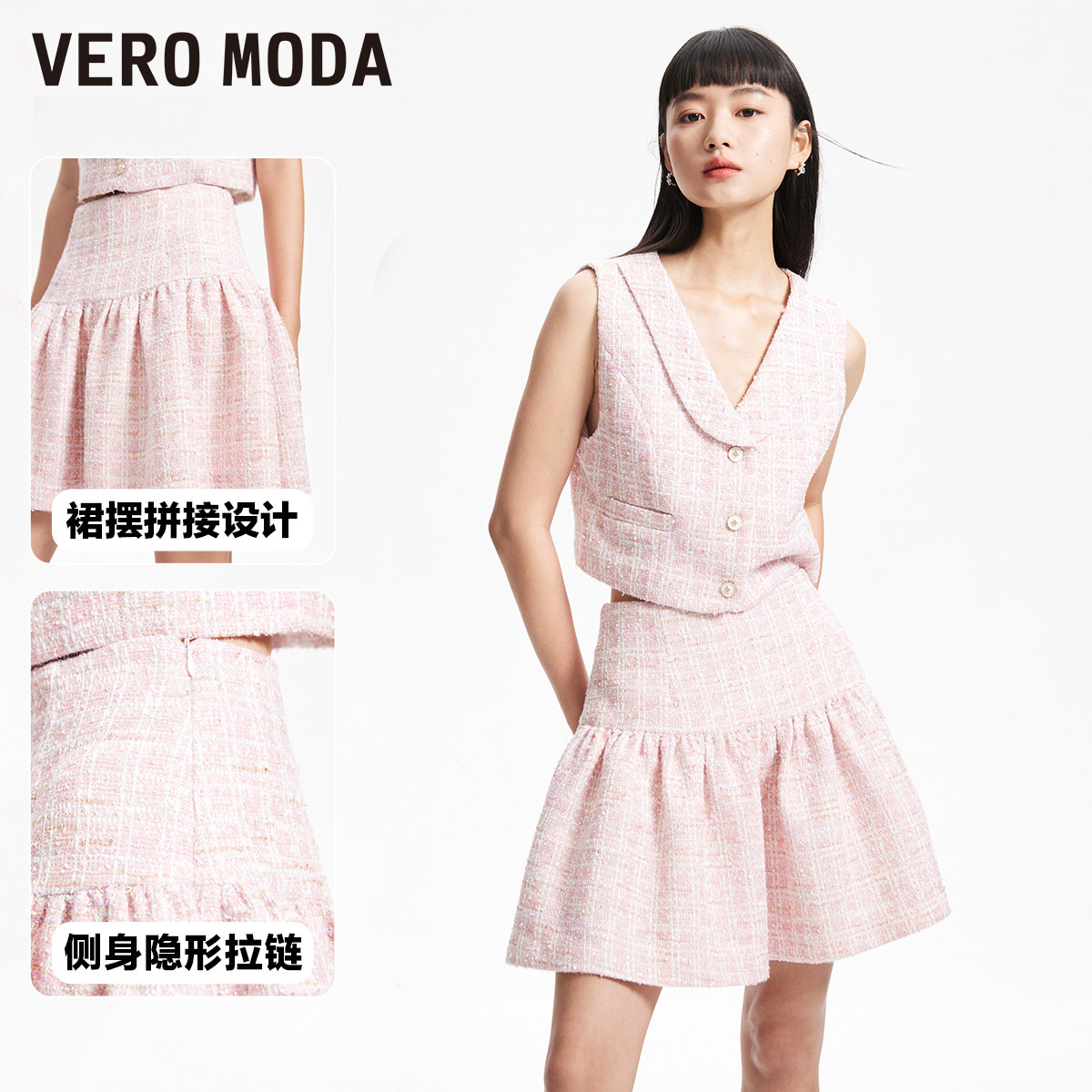 Vero Moda奥莱半身裙秋季新款甜美小香风气质拼接裙摆裙子流行