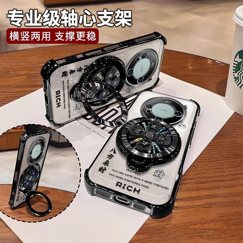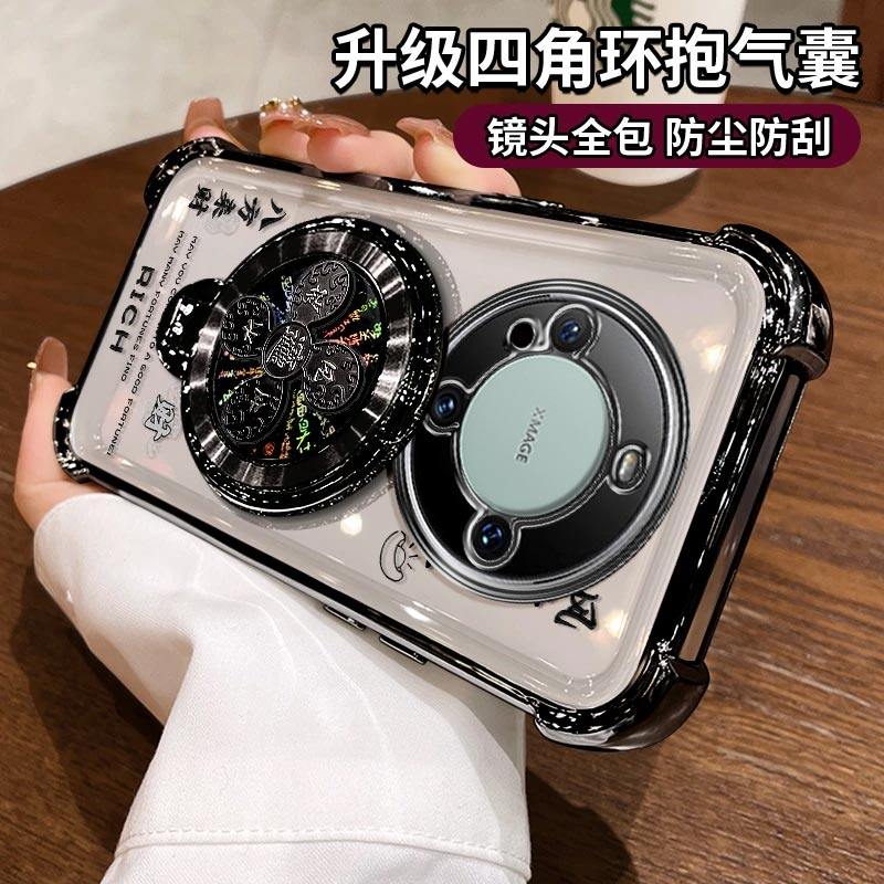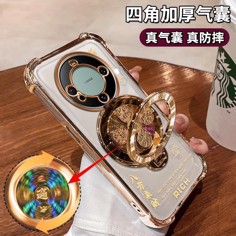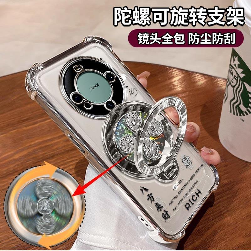 适用华为mate60手机壳风生水起电镀四角防摔高级感简约气囊MATE60PRO解压陀螺支架60PRO+保护套