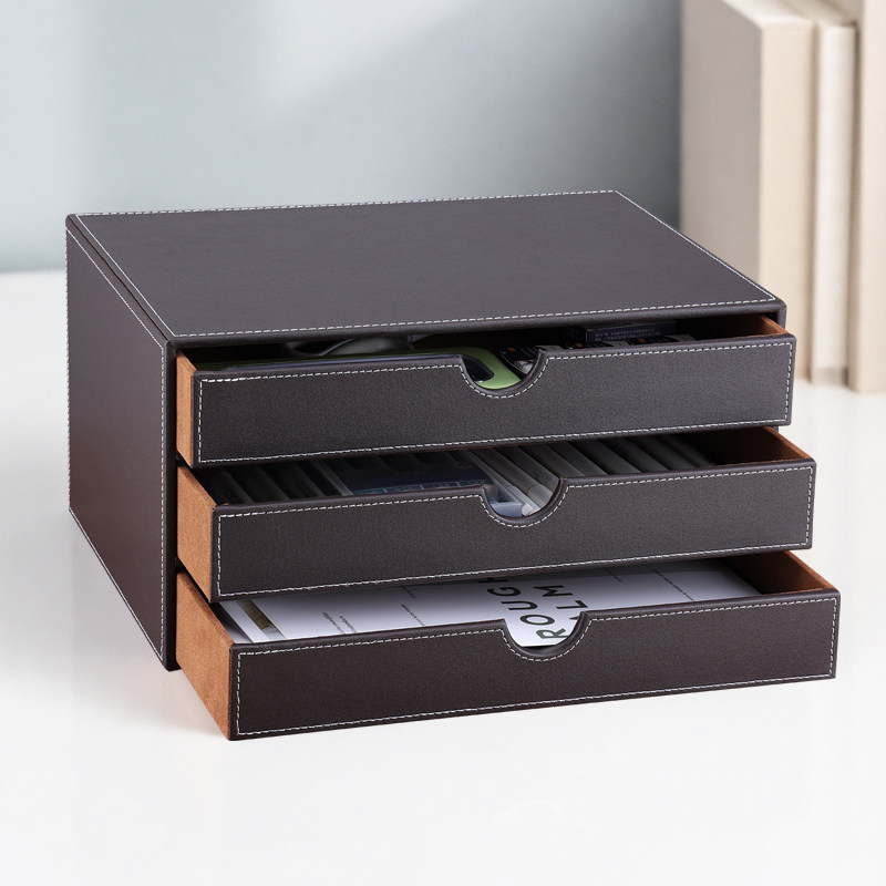 商务办公桌面文件柜A4文件收纳柜文件资料抽屉柜皮革高档柜子黑色
