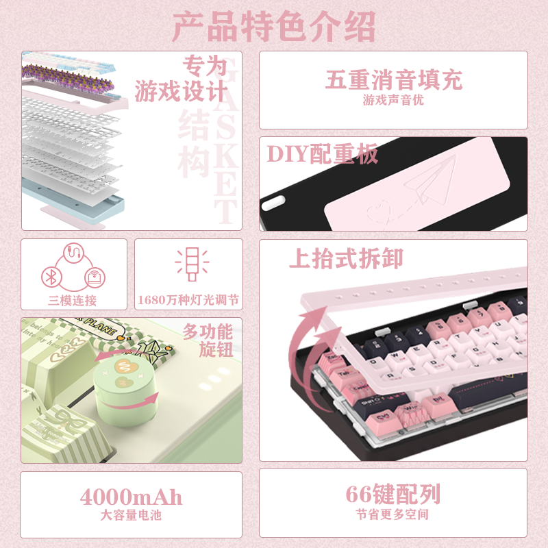 雷咖泽纸飞机66铝坨坨机械键盘客制化套件无线三模电竞游戏专用