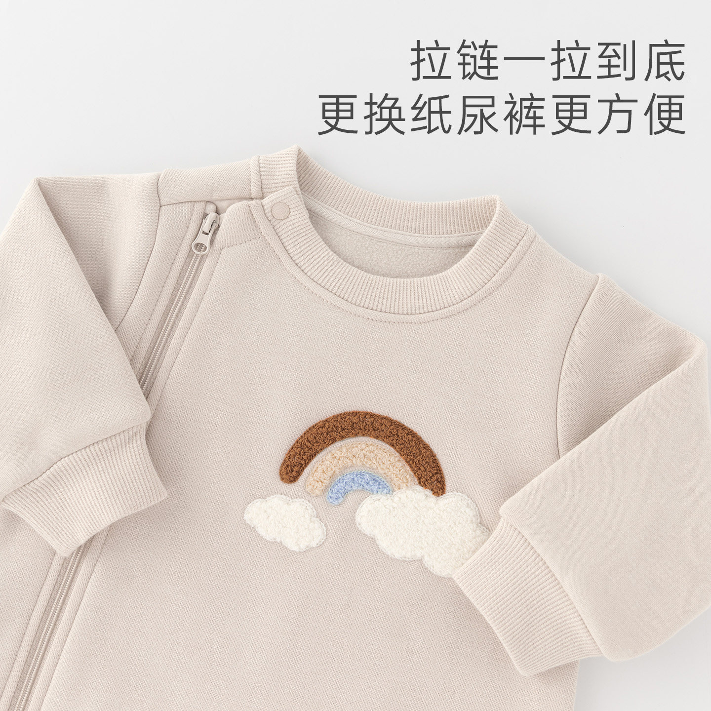 木生棉宝宝连体衣秋冬季加绒加厚婴儿保暖哈衣外出拉链衣服爬爬服