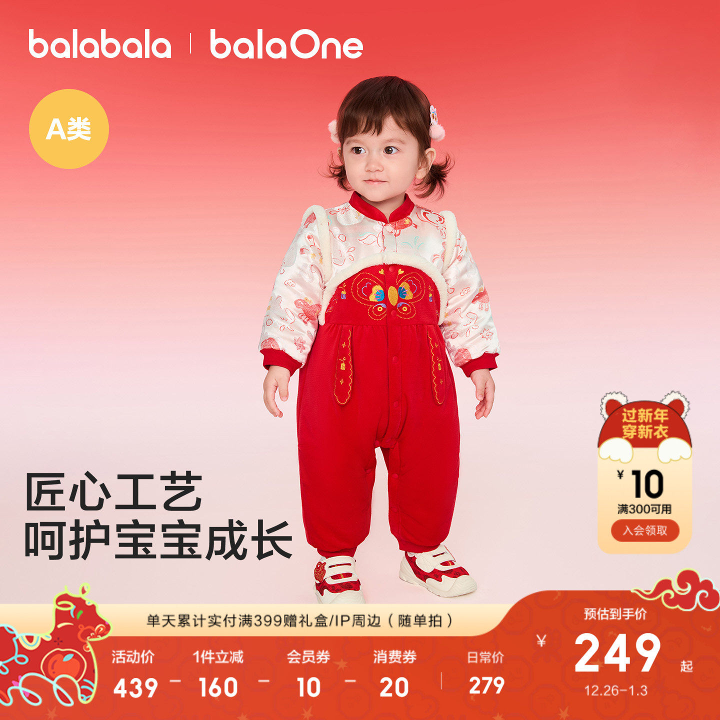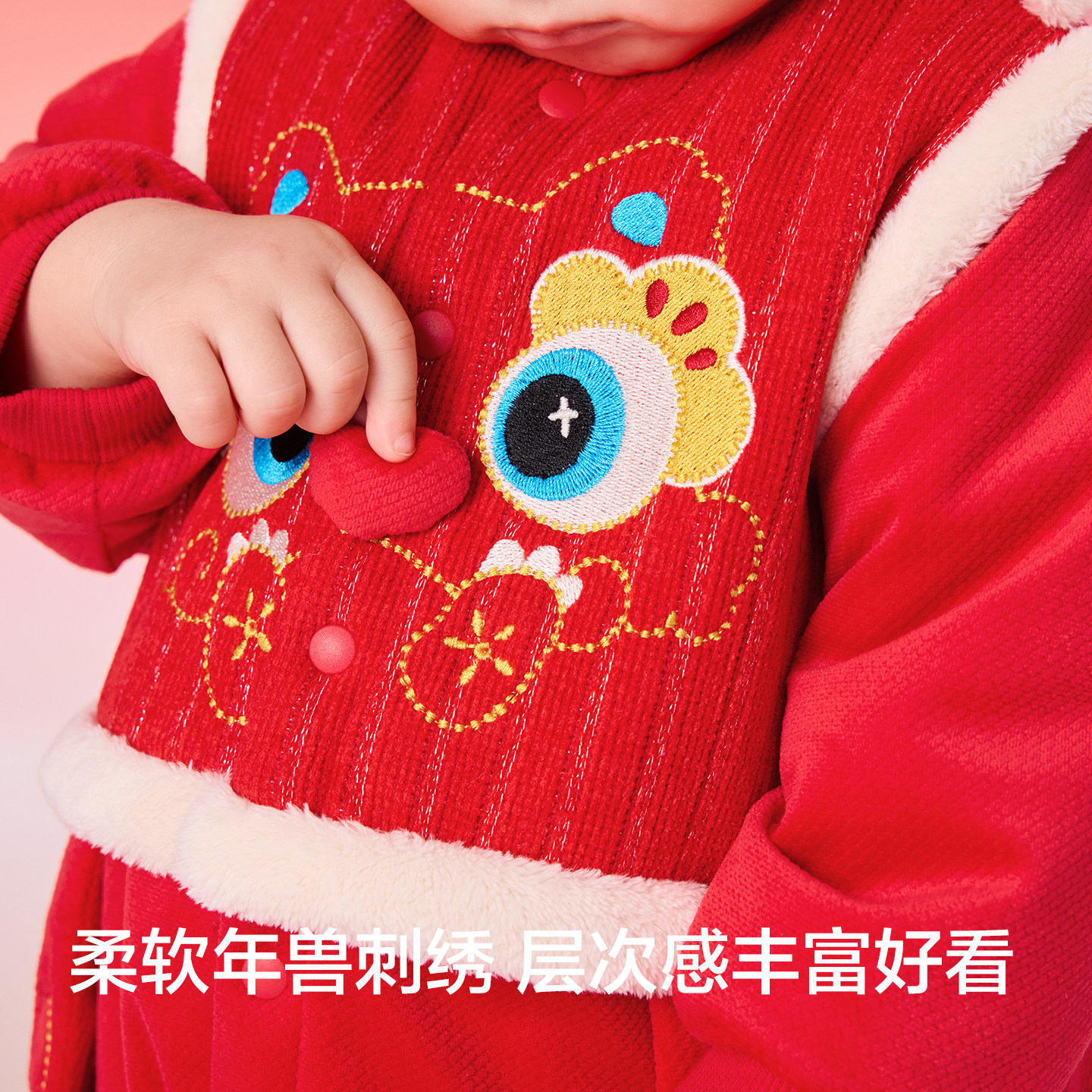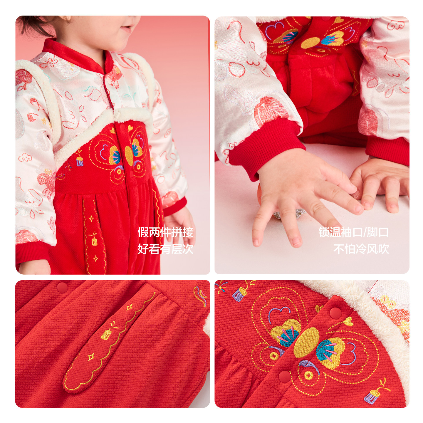 巴拉巴拉童装婴儿连体衣宝宝哈衣2025新款儿童衣服充棉拜年服红色