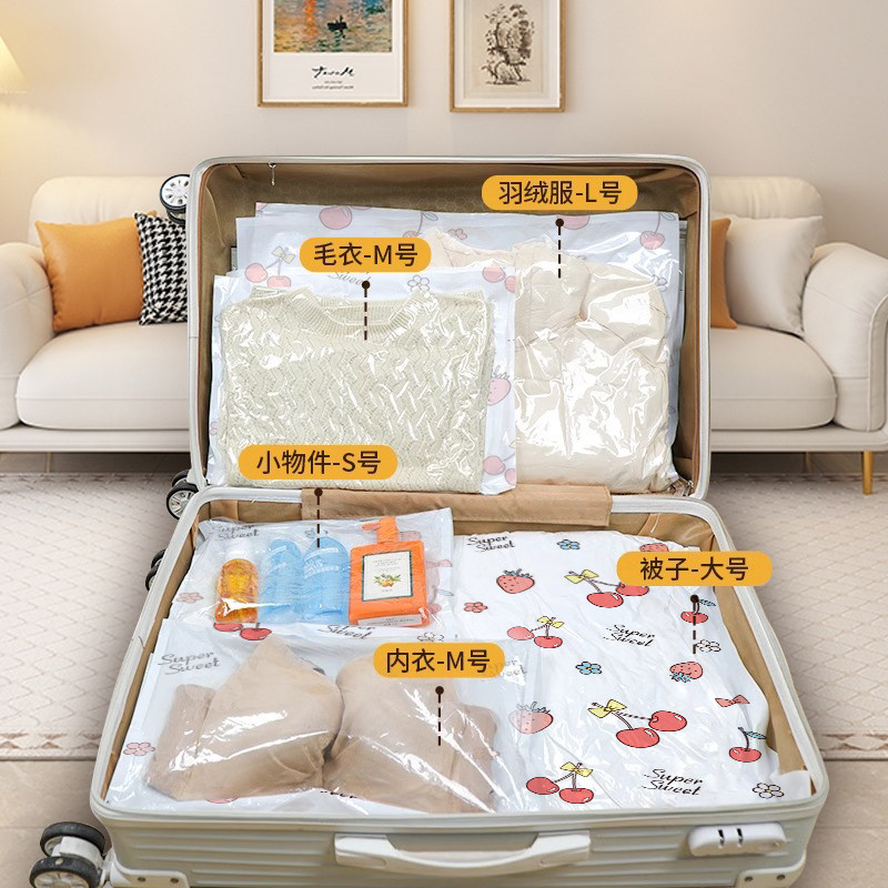旅行真空压缩袋行李箱专用收纳整理衣物免抽气便携手卷密封打包袋