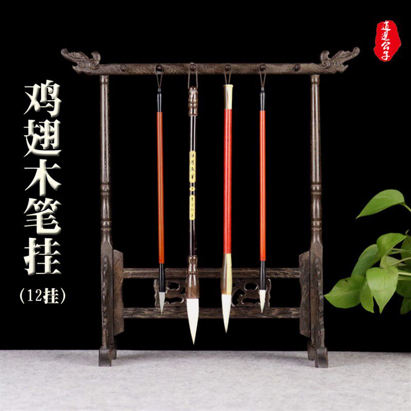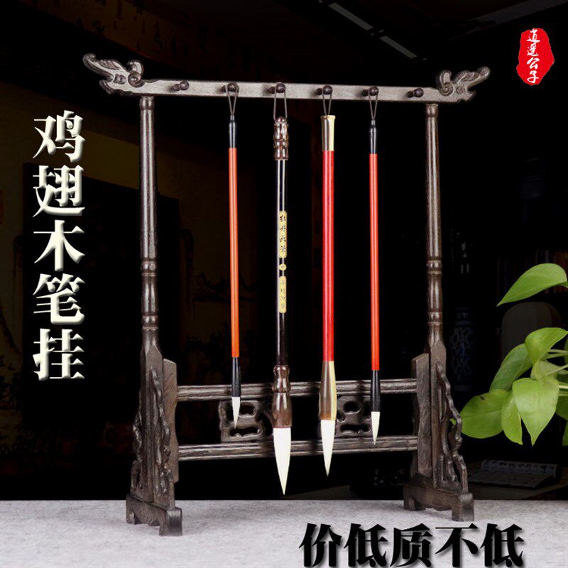 笔架毛笔挂毛笔架笔挂鸡翅木红木实木雕龙头书法用品