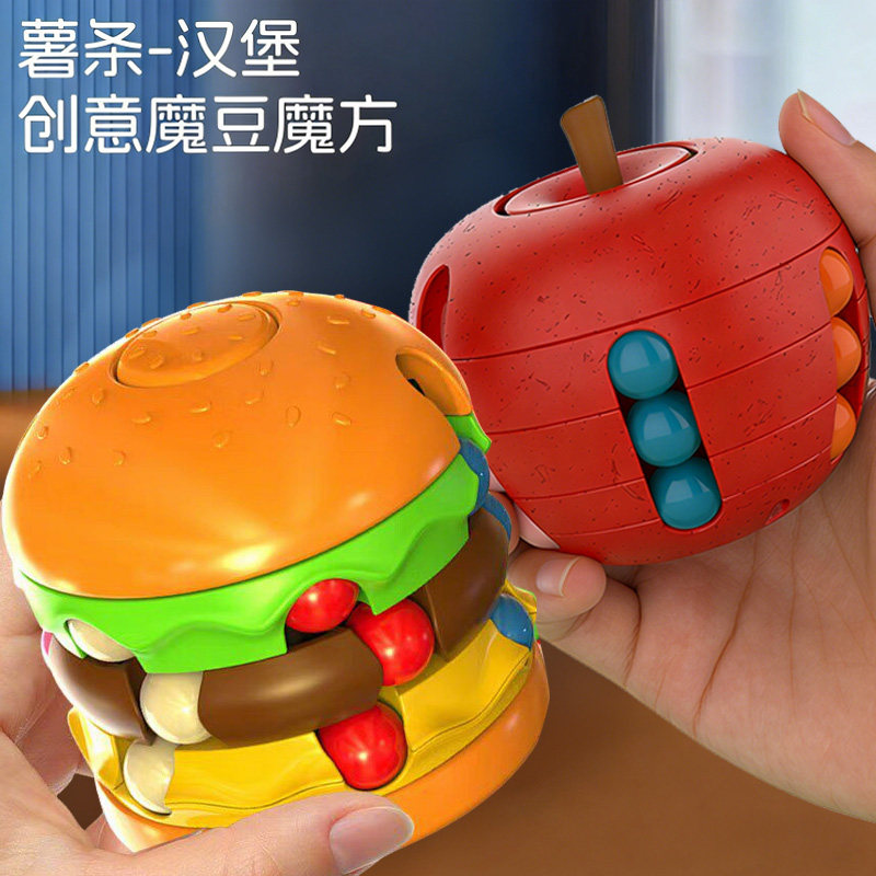 汉堡薯条魔豆魔方指尖陀螺儿童学生滚珠旋转创意解压益智思维玩具