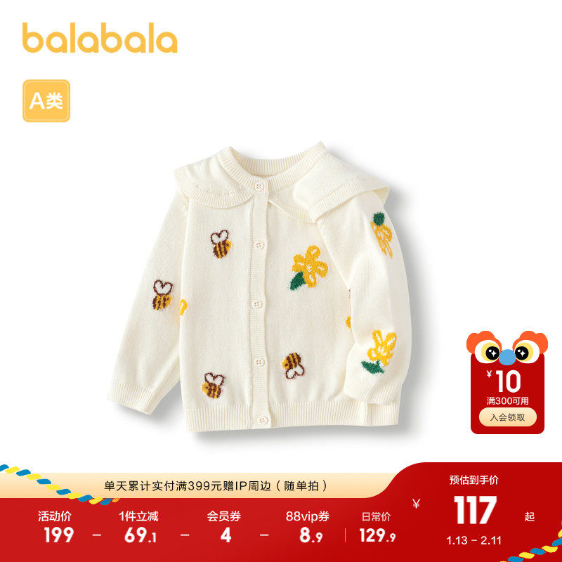 巴拉巴拉婴儿毛衣针织衫宝宝薄开衫毛衫2025春秋装线衣百搭上衣潮