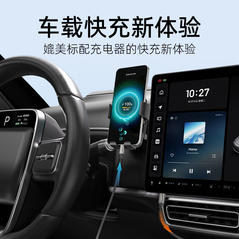 磁吸车载CarPlay充电线双头Type-C数据线贴贴线PD100W快充线适用平板iPad苹果15-17promax华为小米手机