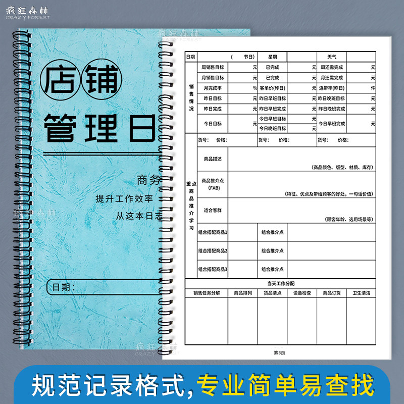 店铺管理日志店长效率手册实体店员工考勤排班表每日销售日报表店铺会议记录本门店销售记录员工销售目标记录
