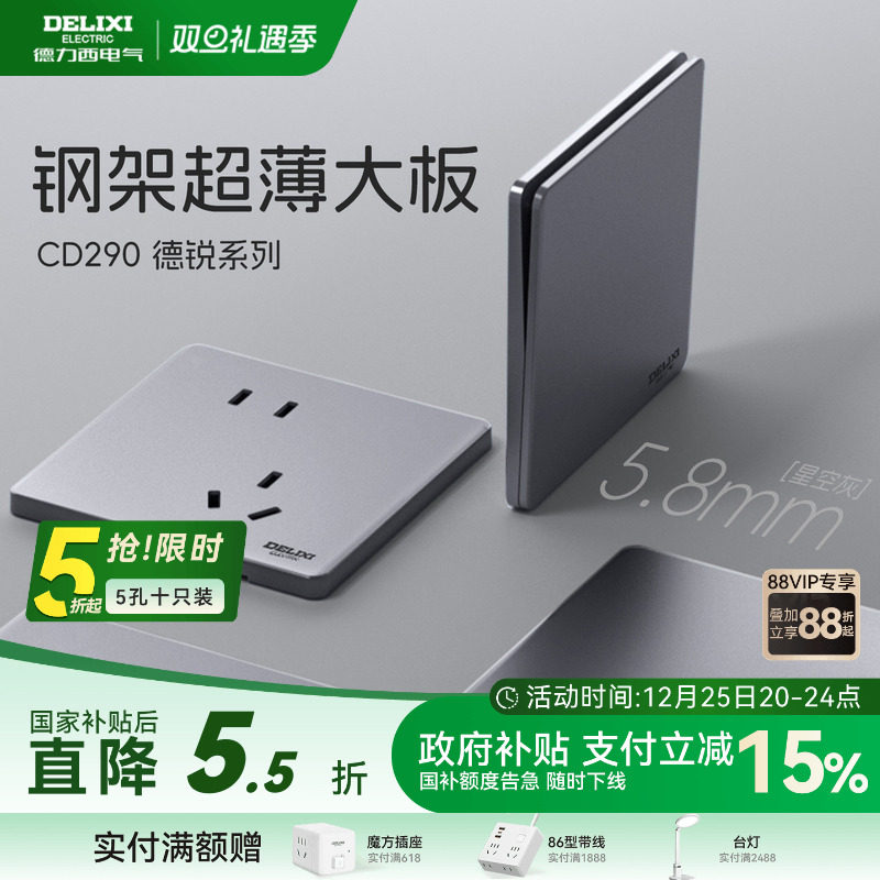 德力西旗舰店290超薄开关插座面板16A空调墙壁一开五孔86型星空灰