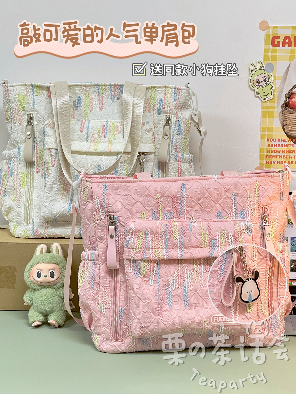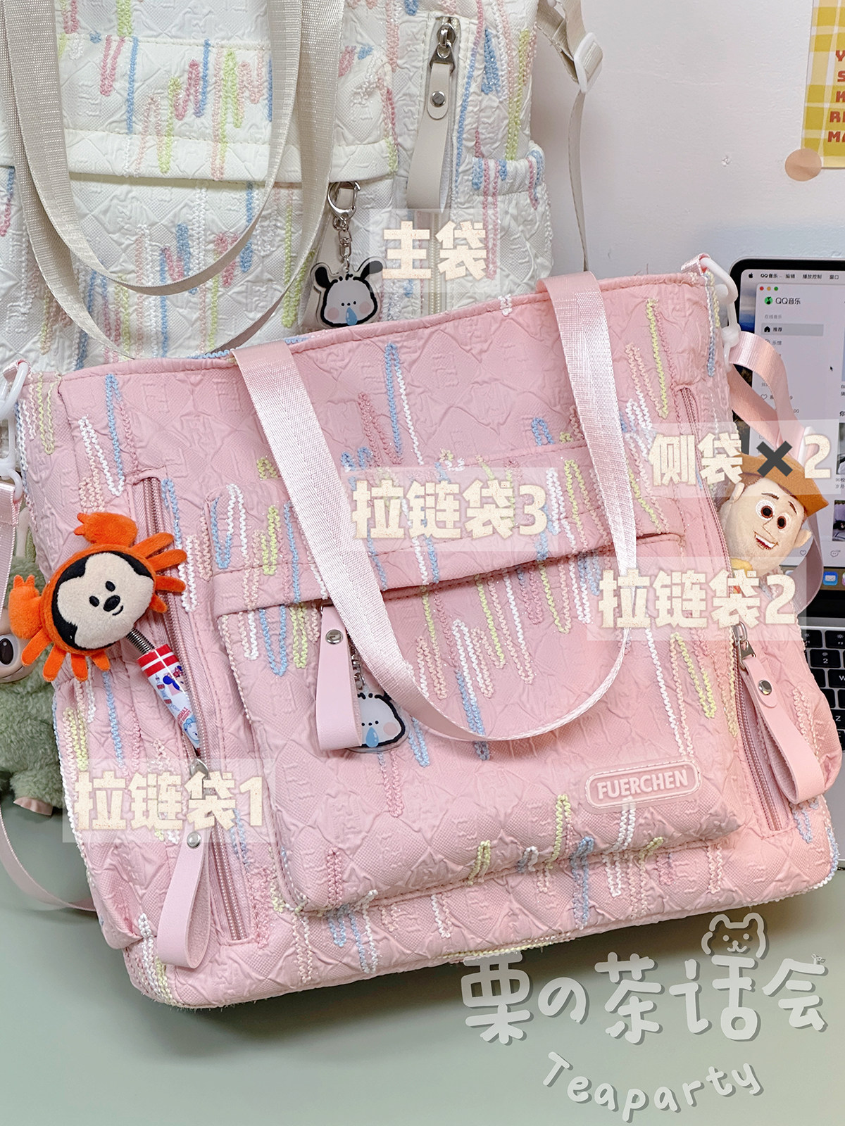 茶话会高颜值可爱学生上课包包女补习袋大容量初中生斜挎包单肩包