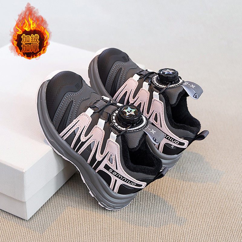 巴布豆儿童运动鞋女童2025新款秋季女孩软底旋转纽扣鞋子保暖二棉