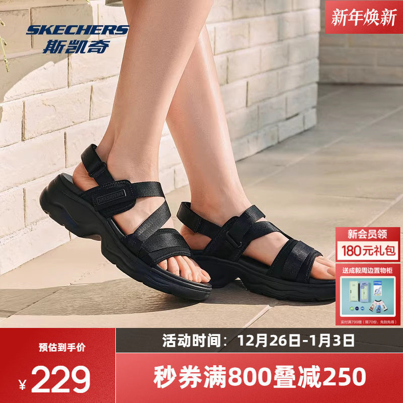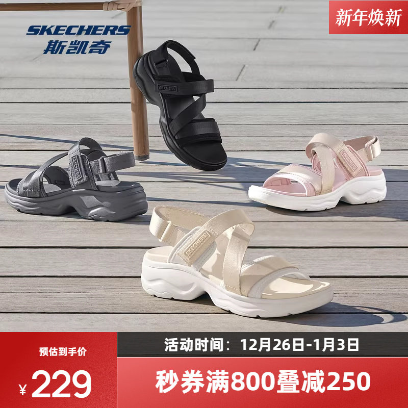 斯凯奇女子休闲魔术贴凉鞋简约日常百搭透气舒适轻盈沙滩鞋
