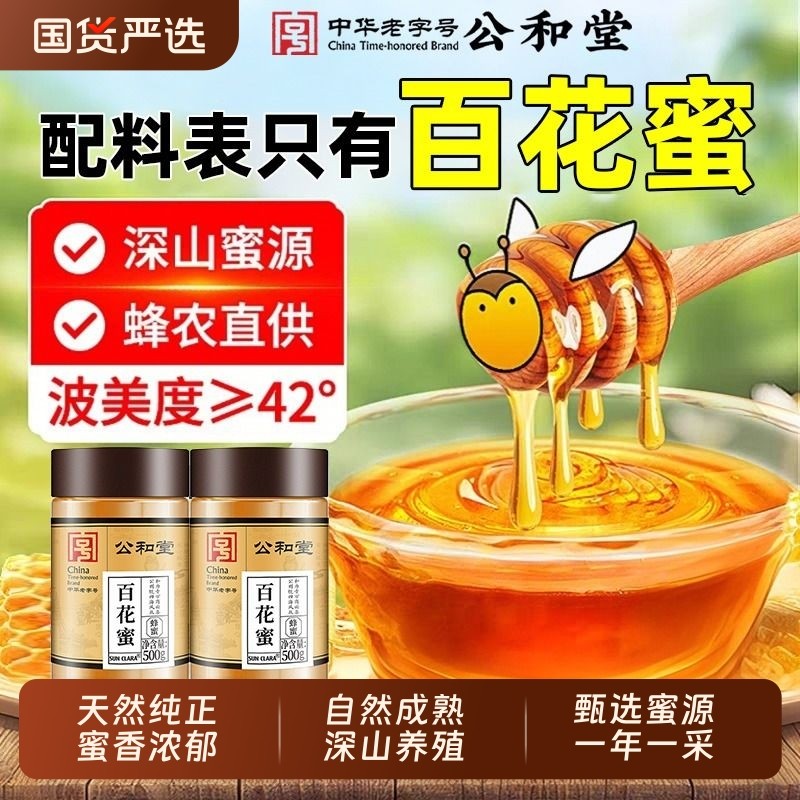 公和堂百花蜂蜜纯正天然野外生土蜂巢蜜露高原蜂蜜官方旗舰正品店