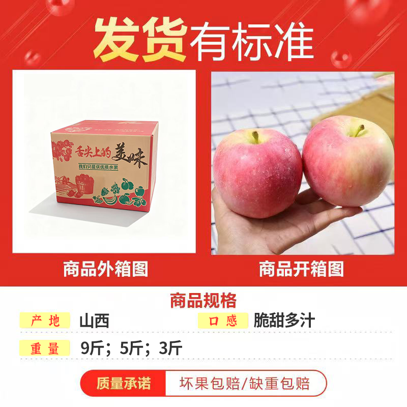 正宗陕西洛川苹果水果新鲜当季整箱红富士冰糖心脆甜8.8斤包邮
