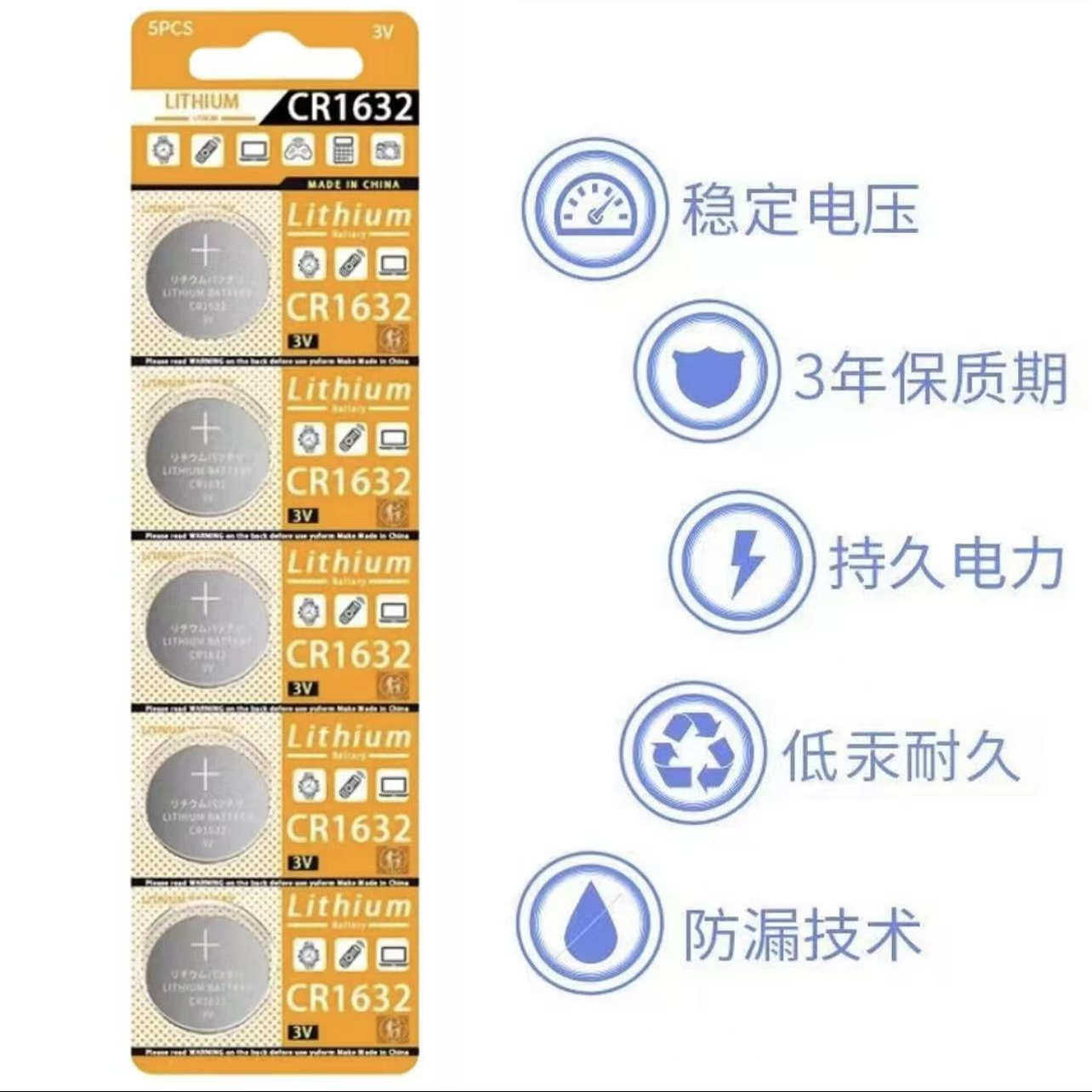 CR1632纽扣电池3V锂电子汽车钥匙摩托车电动车遥控器胎压防盗器自拍杆电子手表体重秤主板儿童玩具圆形小电池