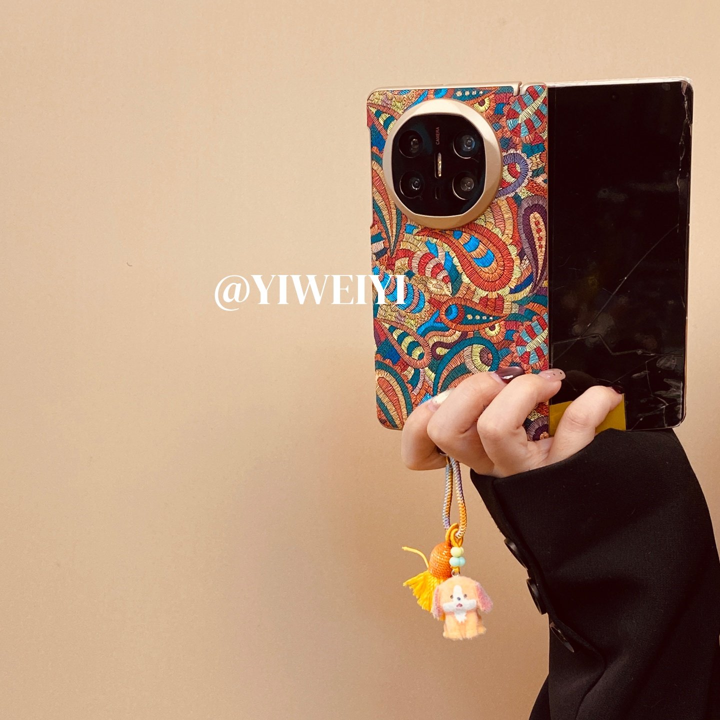 折叠屏手机壳双中轴腰果花彩色可卡布挂件