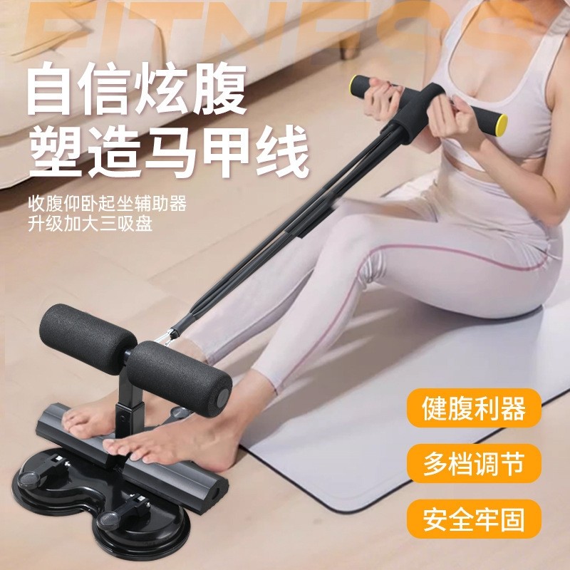 仰卧起坐辅助器带拉绳美腰收腹双吸盘运动健腹健身器材压脚卷腹器