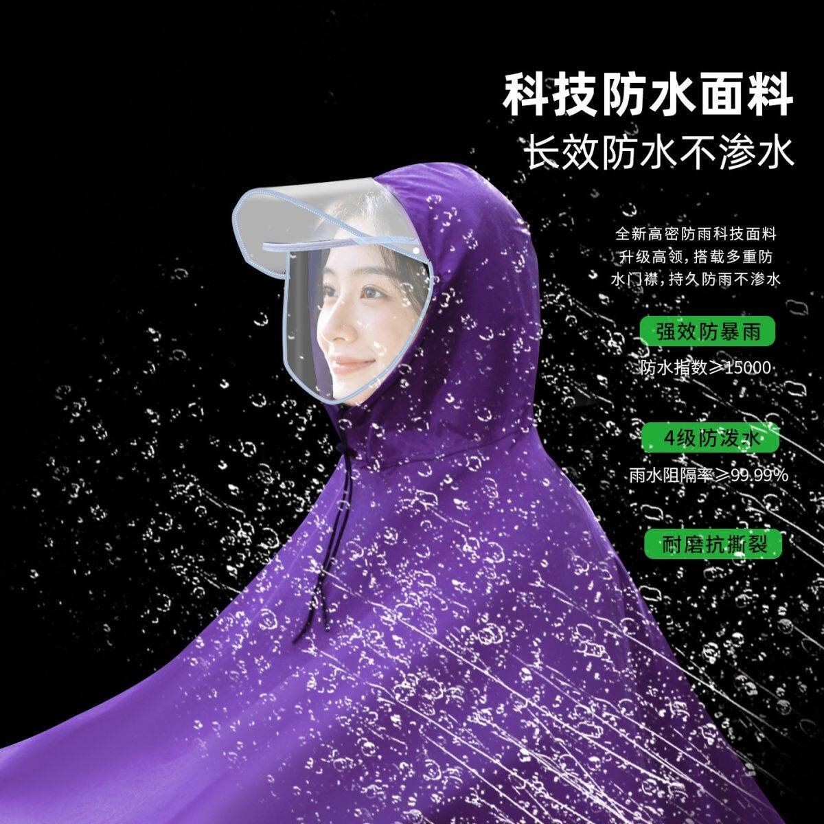 加厚雨衣电动车自行车单人防暴雨雨披加大骑行雨具一体式护脸