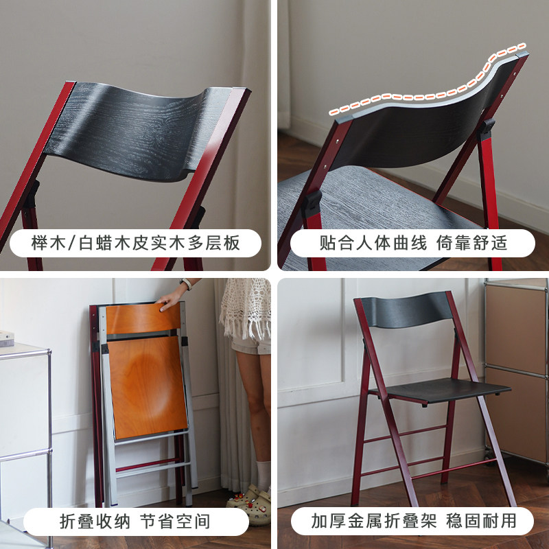 复古折叠椅家用阳台灯芯绒靠背餐椅ins网红拍照怀旧办公会议椅子