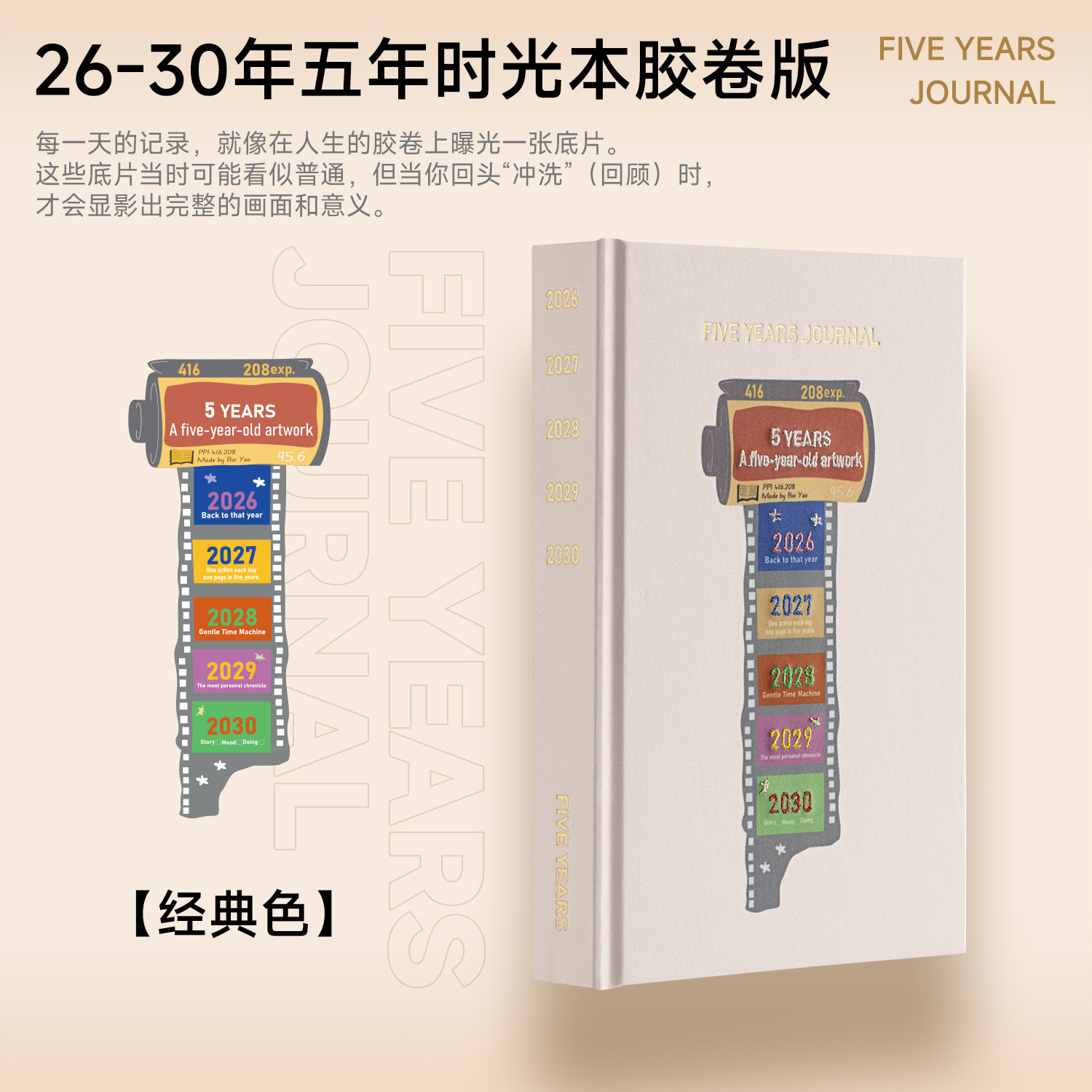 PPI速干白瑶纸固定日期2026-2030胶卷时光五年本子手帐精装日程本手账笔记本A5创意礼品赠朋友五年日记a5