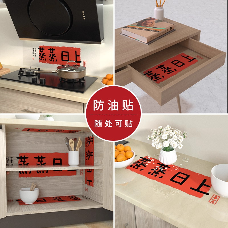 厨房防油贴纸防水自粘耐高温灶台油烟机蒸蒸日上乔迁之喜新年装饰
