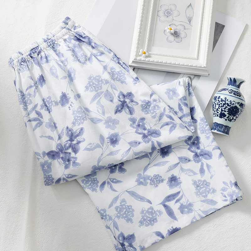 美标新款纯棉睡裤薄款休闲七分裤女春夏可外穿全棉质印花家居裤子