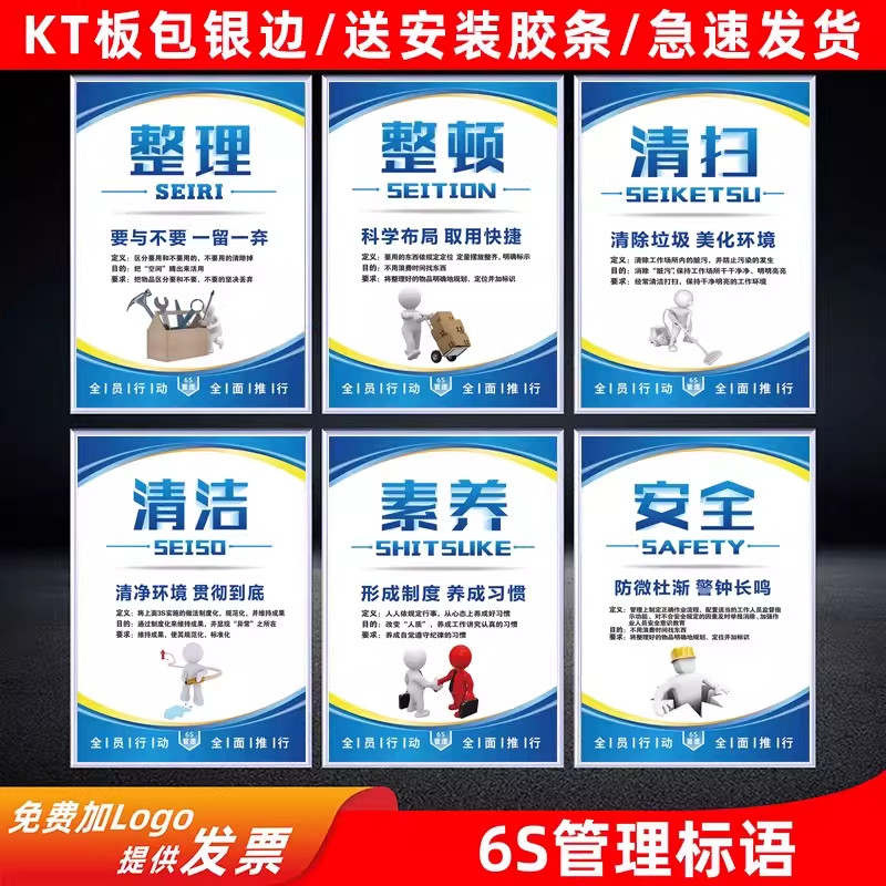 6S管理标语5S/7S/8S/10S企业文化宣传海报车间仓库展板挂图标识牌上墙办公室工厂墙贴制度牌挂牌kt板