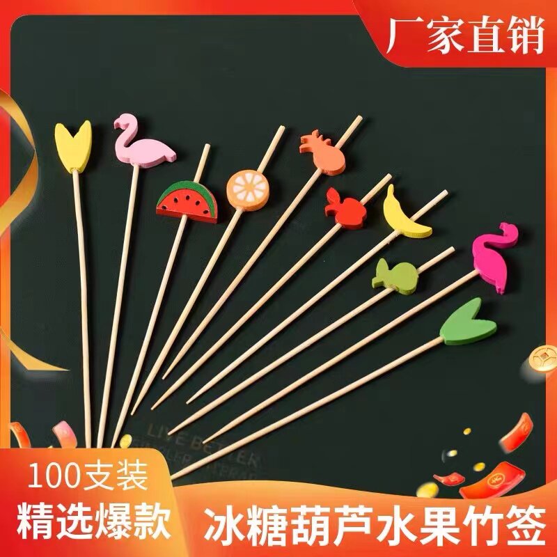 创意喜字一次性水果签水果叉子婚宴宴会喜庆蛋糕甜品节庆装饰竹签