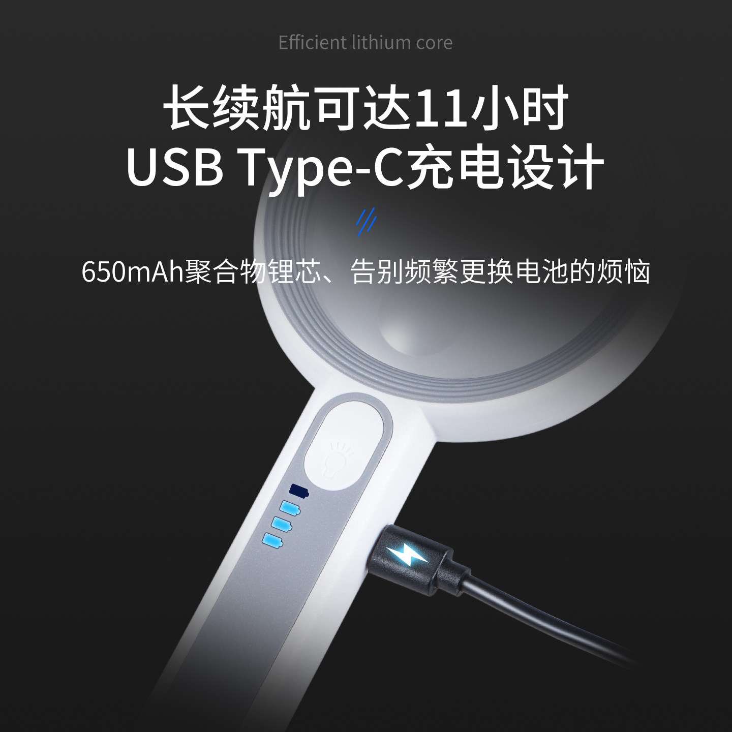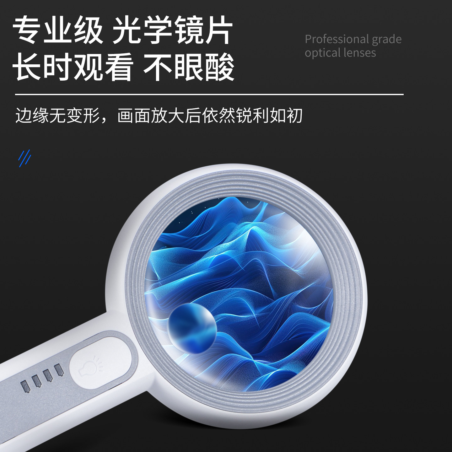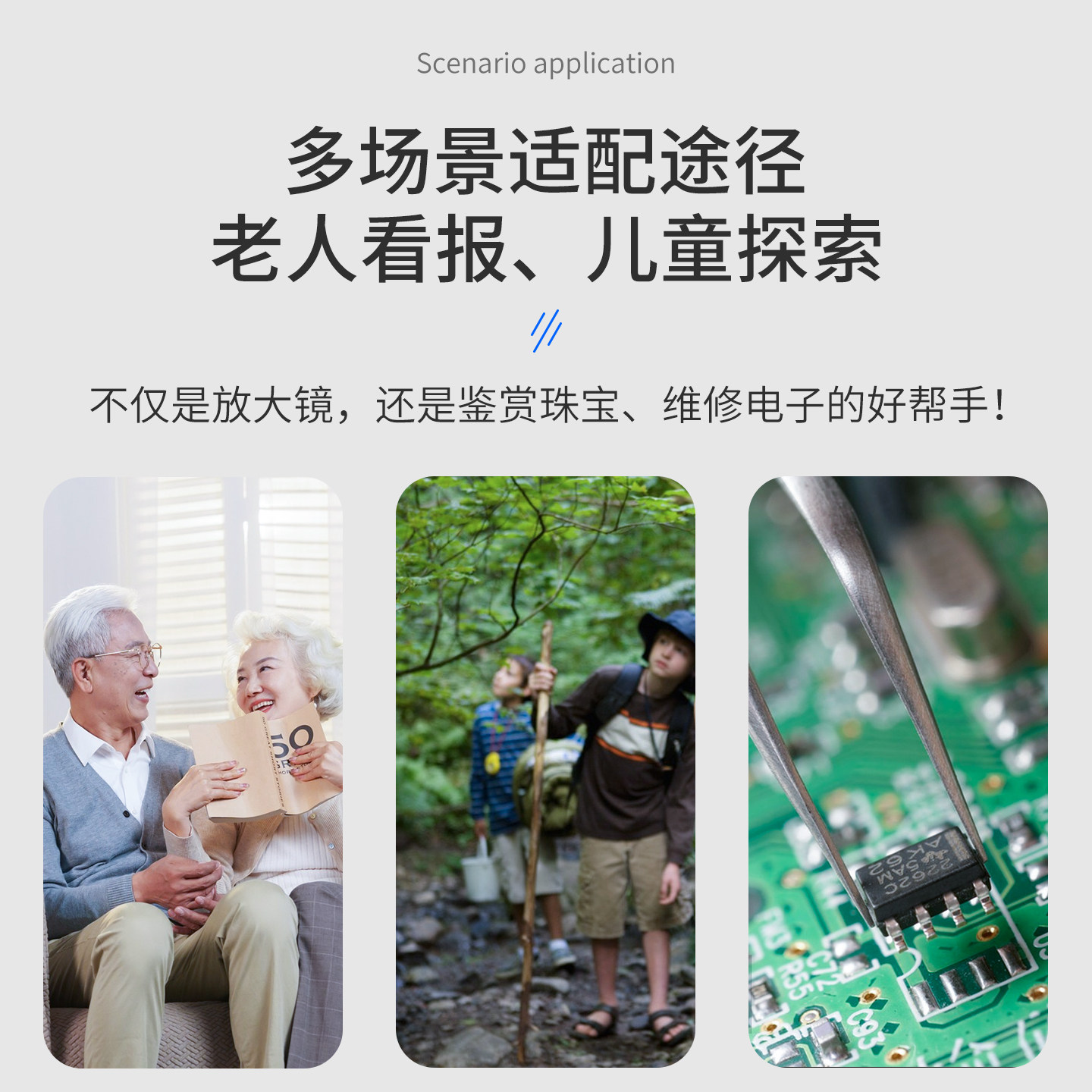陌华新升级Type-C充电放大镜高清正品老人用30倍阅读看书文玩珠宝鉴定电子维修专用放大镜儿童学生不伤眼80倍