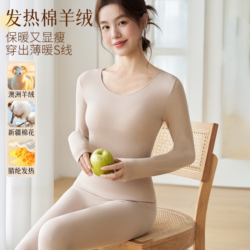 罗丽丝保暖内衣女羊绒发热修身显瘦纯棉毛衫美体高腰收腹秋衣秋裤