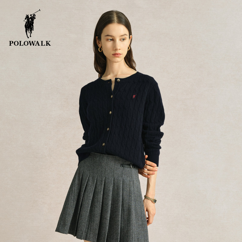 【特惠】POLOWALK女士羊毛衫毛衣春季圆领纯色薄款开衫内搭女上衣