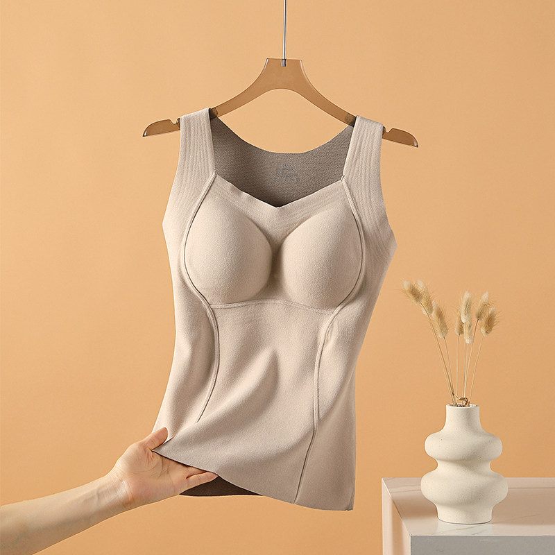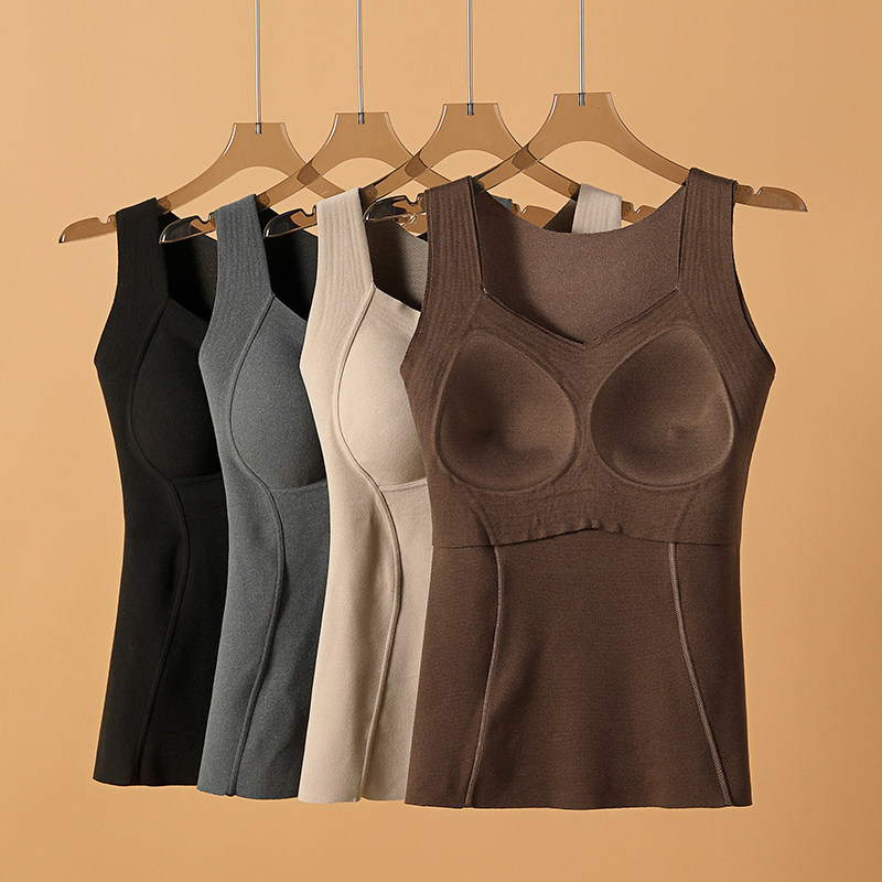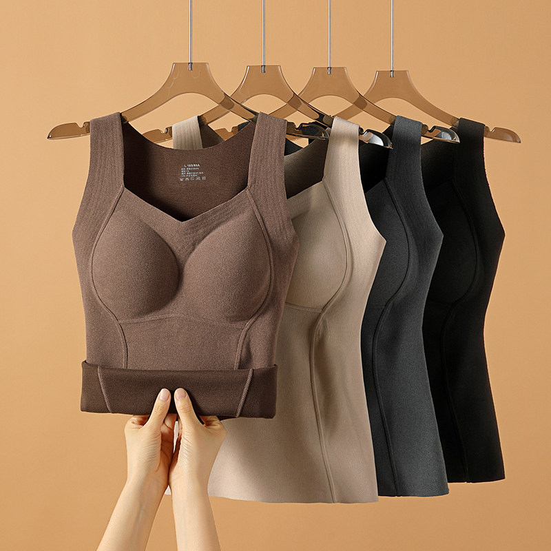 石墨烯保暖背心女秋冬加绒加厚发热德绒带胸垫一体固定杯贴身内衣