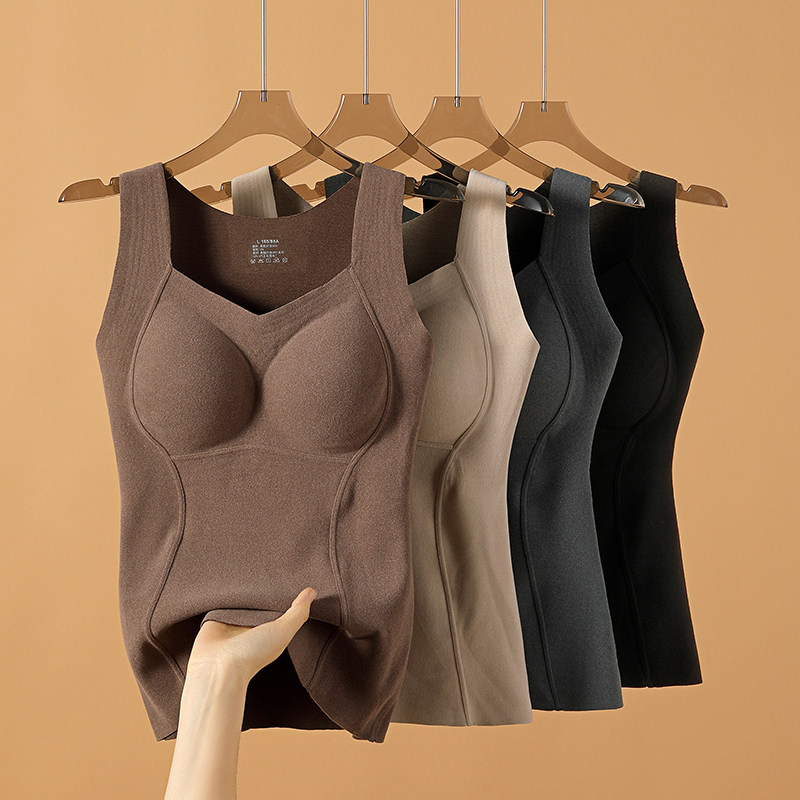 石墨烯发热德绒保暖背心女秋冬季加绒加厚带胸垫无痕内衣2025新款