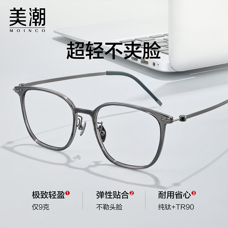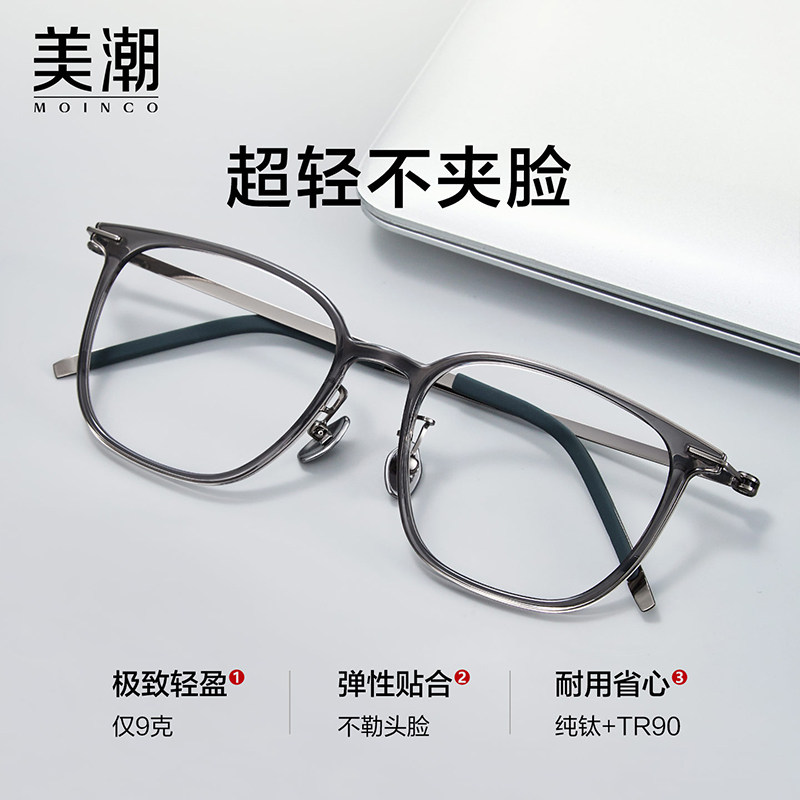 超轻钛架眼镜男款近视可配度数防蓝光平光护眼方形镜框舒适眼睛架