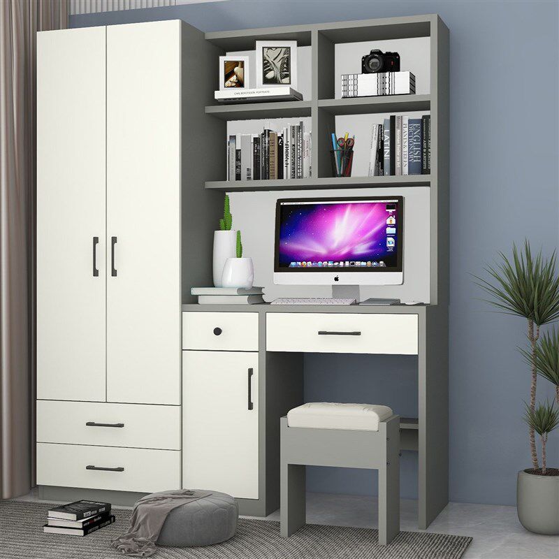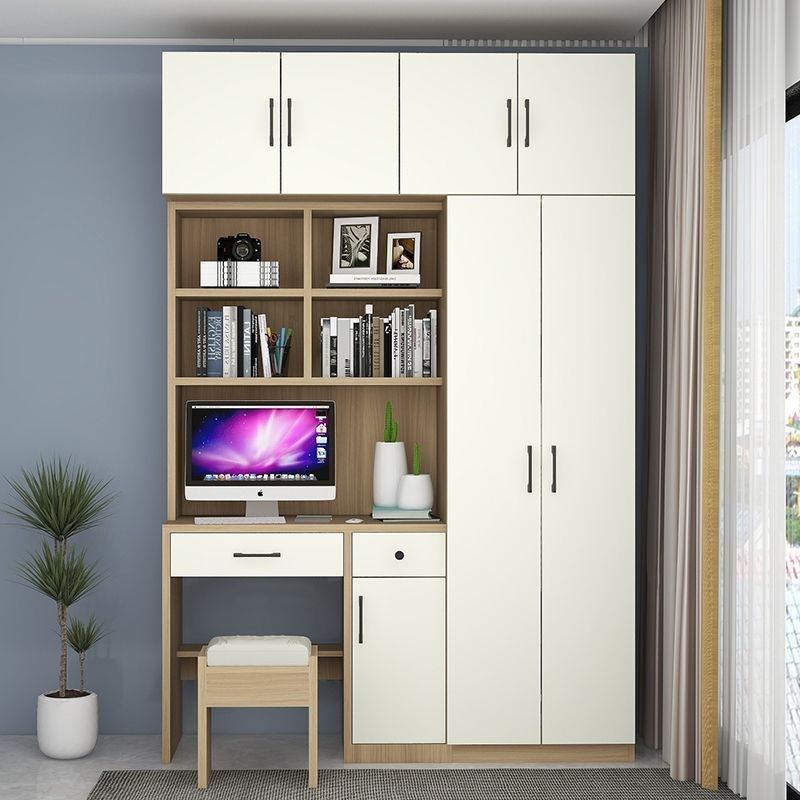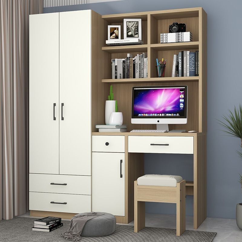 连体书桌带衣柜一体儿童房电脑桌书柜组合小户型家用卧室写储物柜