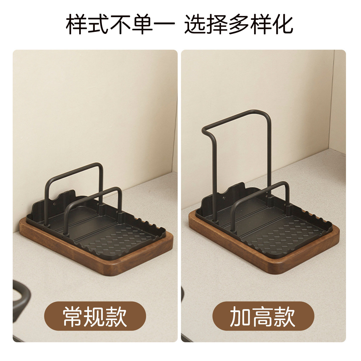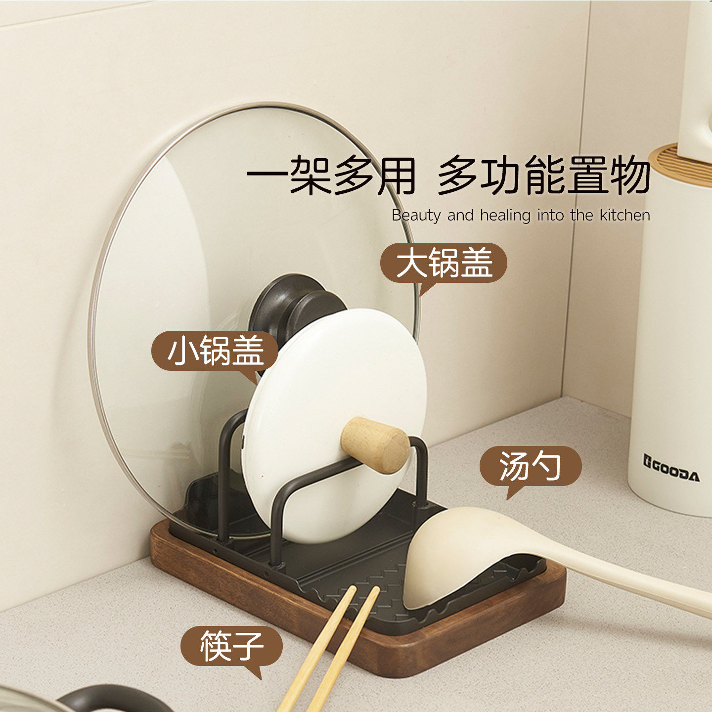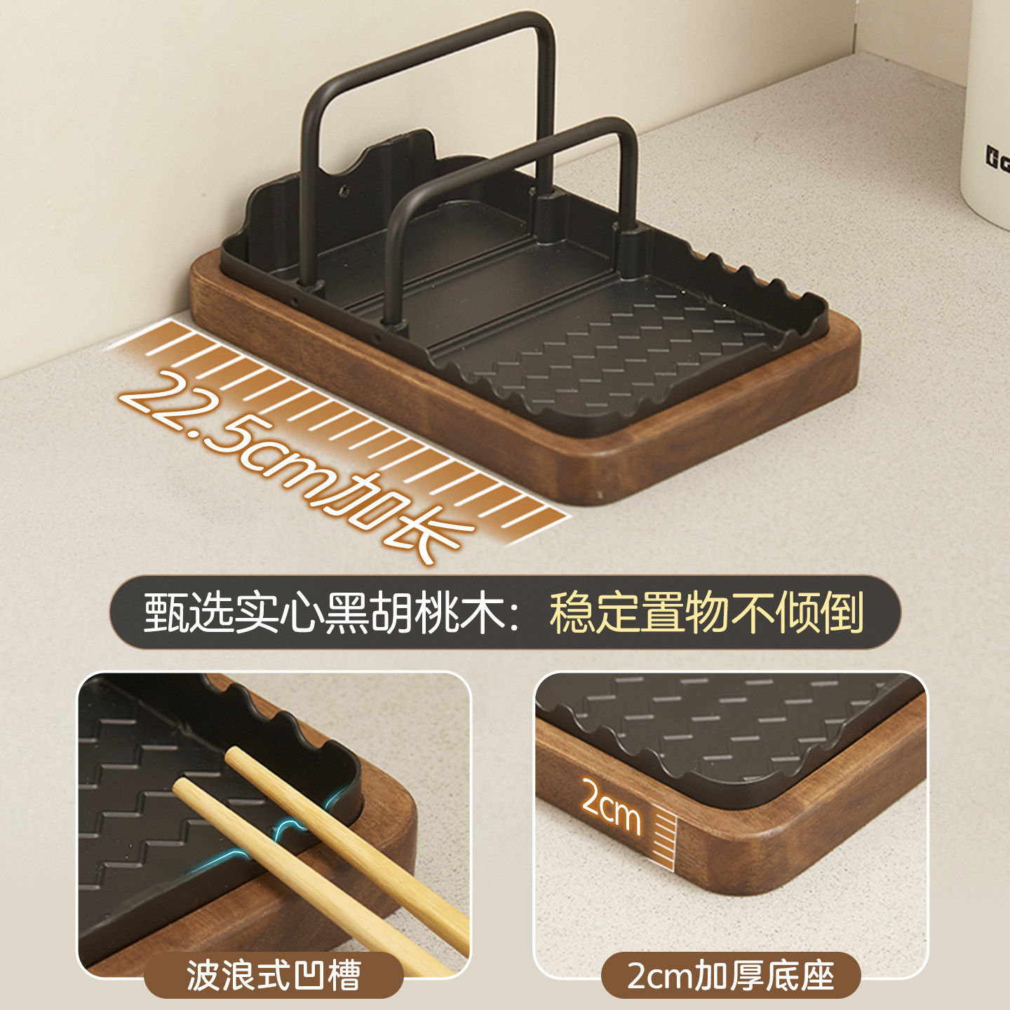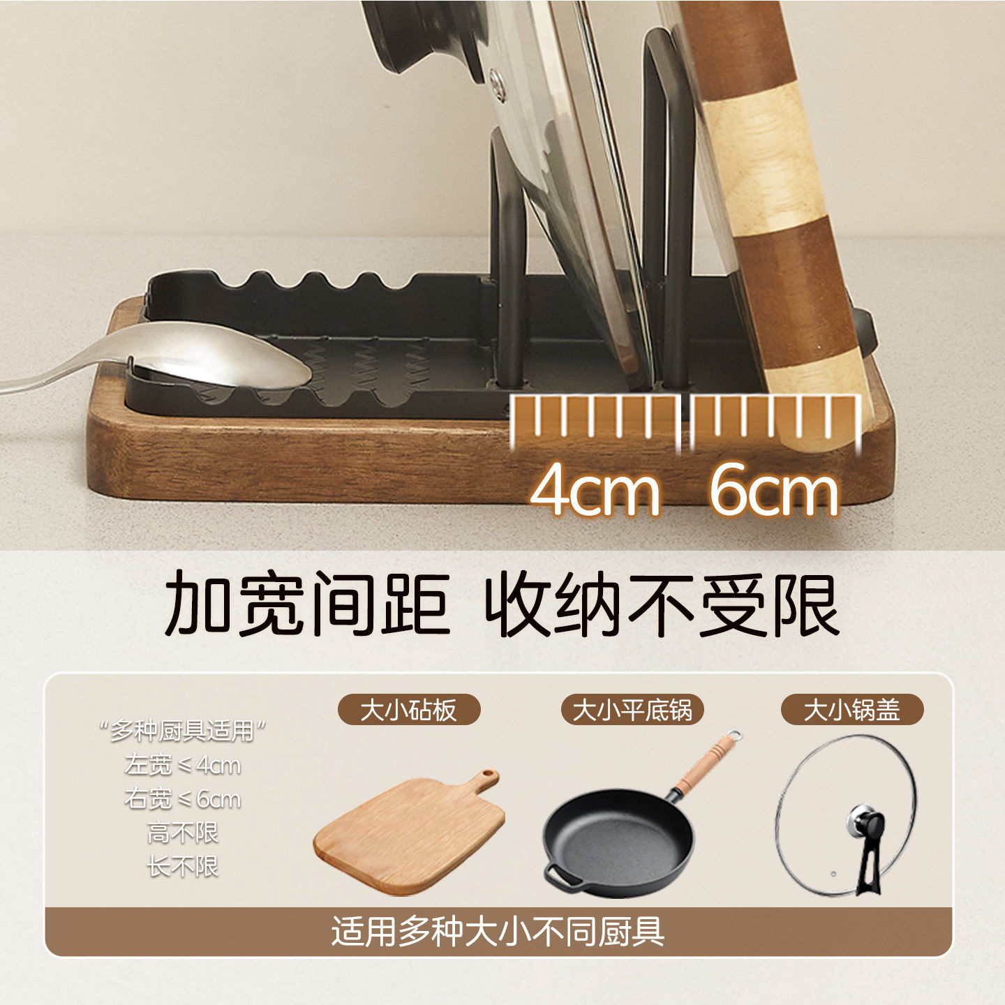 胡桃木厨房锅盖架台面置物架菜板免打孔放锅铲锅具砧板收纳放置架