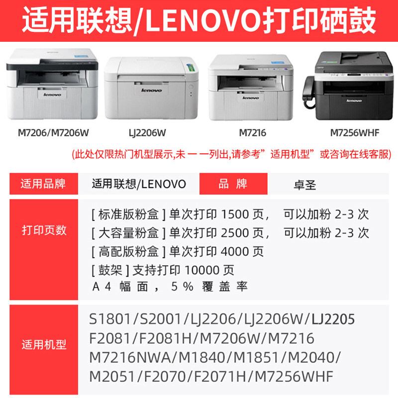 适用联想7206W硒鼓易加粉M7206W粉盒m7206黑白打印机墨粉盒鼓架